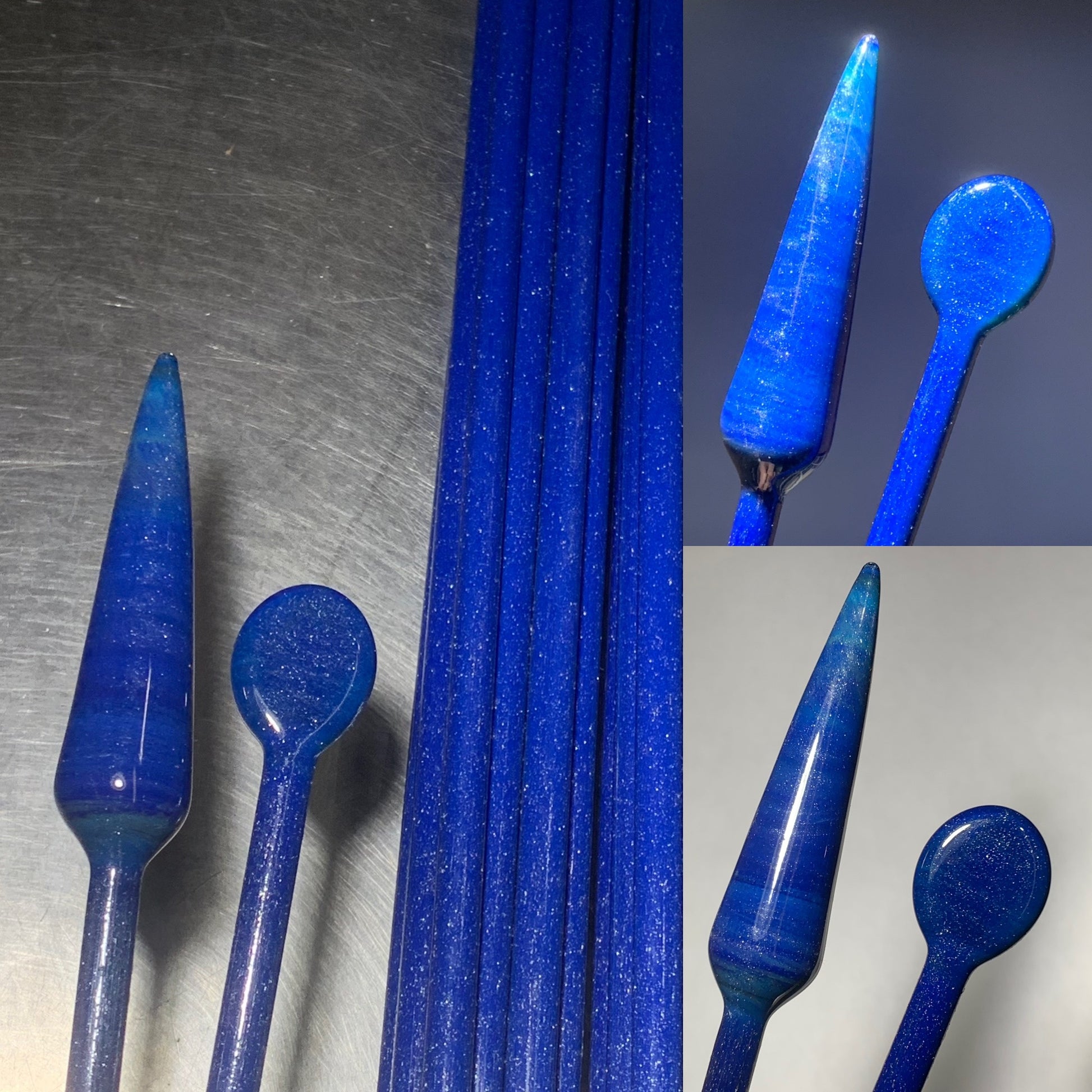 Our newest batch of Acadian Night is a sparkle color with a blue hue and silver striking effect.