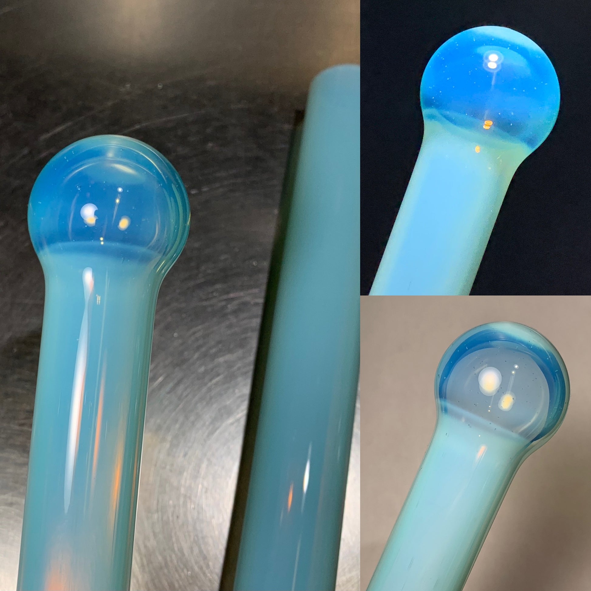 Clear over our Marina. Marina is a crisp aquatic blue reminiscent of a clear pond on a bright summer day. Marina is a copper based opal blue.