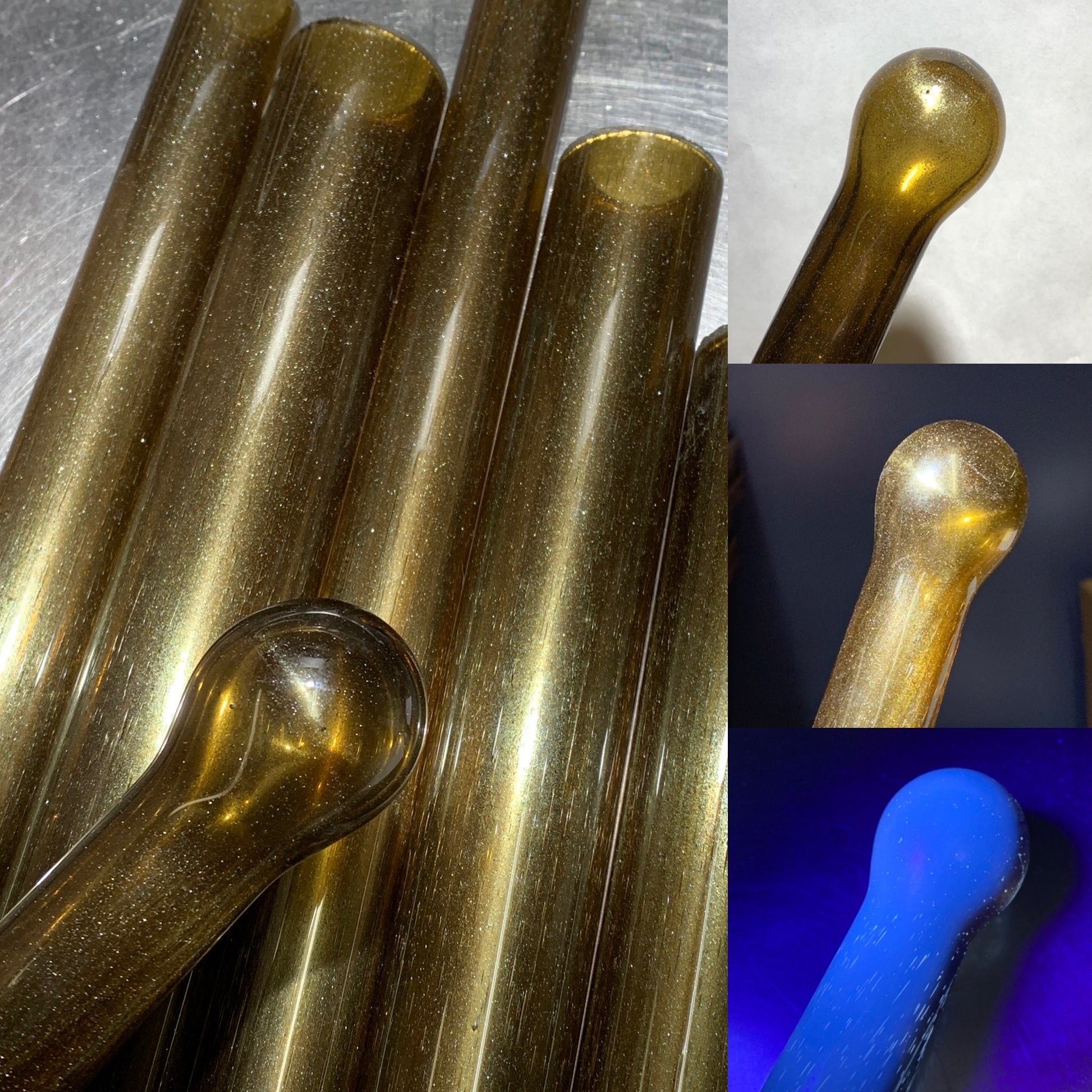 Exp. Bronze Pearl under Euro, a transparent that glows blue under UV light.