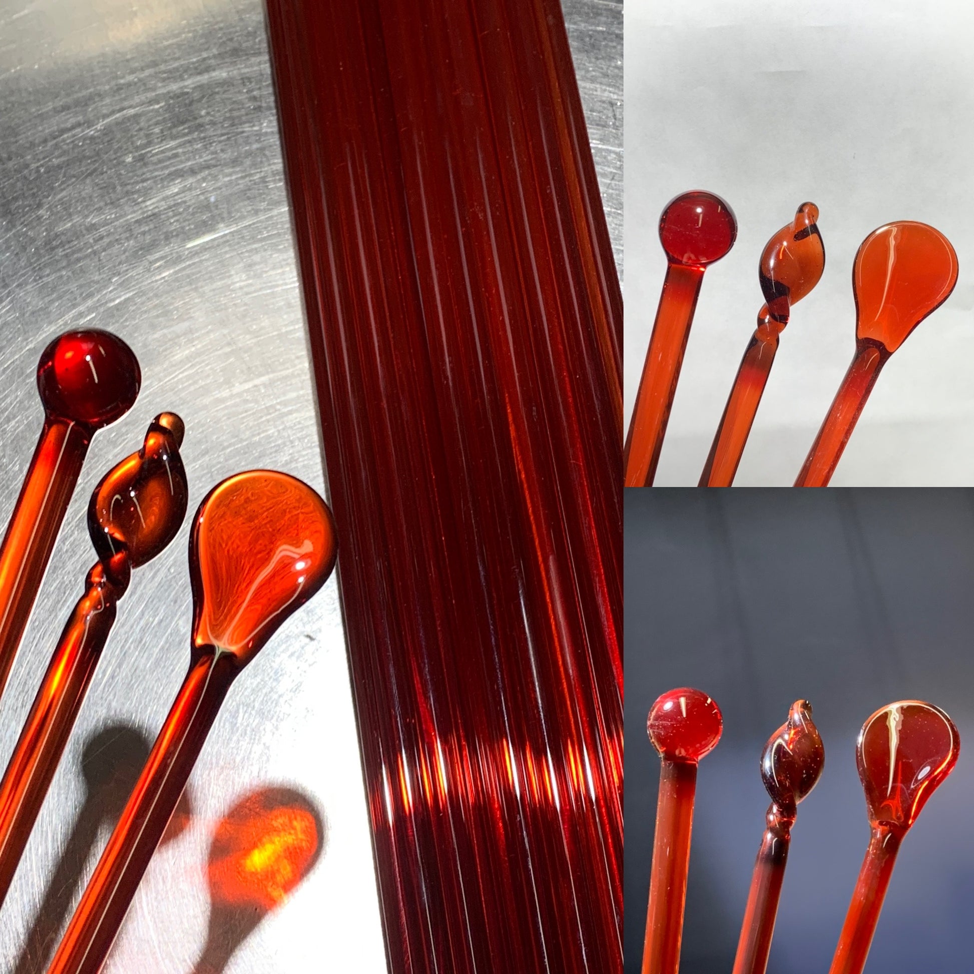 Bright yet deep transparent red rod that really pops. This unique batch varies slightly in tone from the original, almost in the direction of a red orange though still definitely in the Blood Red family.