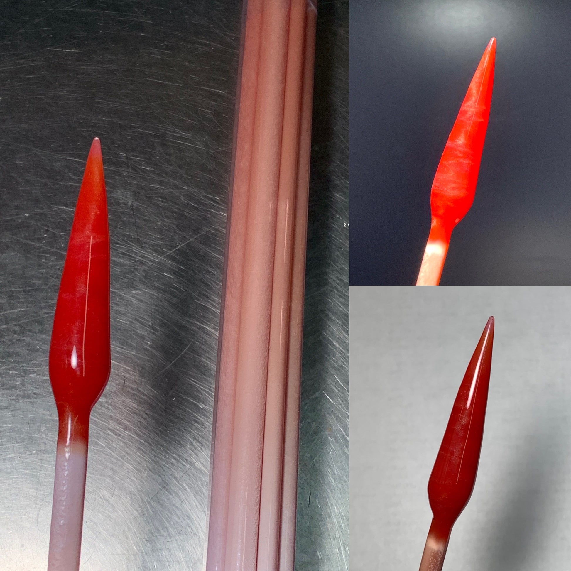Coraline Satin is a cadmium red satin color worked best in a gentle flame or encased. This is a limited batch available while supplies last.