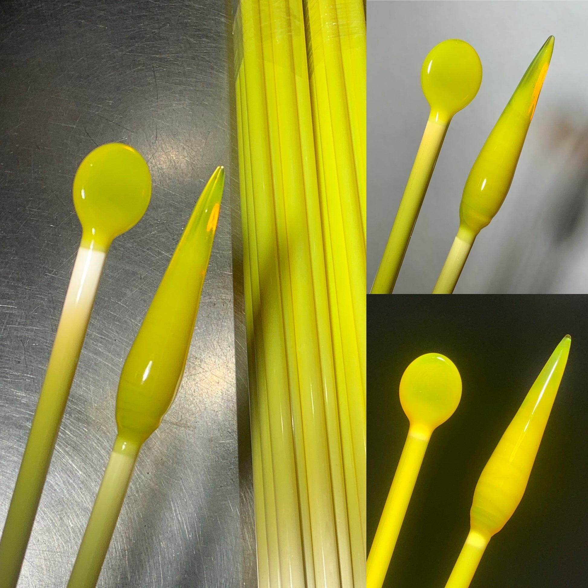 This is a vivid yellow with opal qualities. Color works best in a neutral to oxidizing flame or encased.
