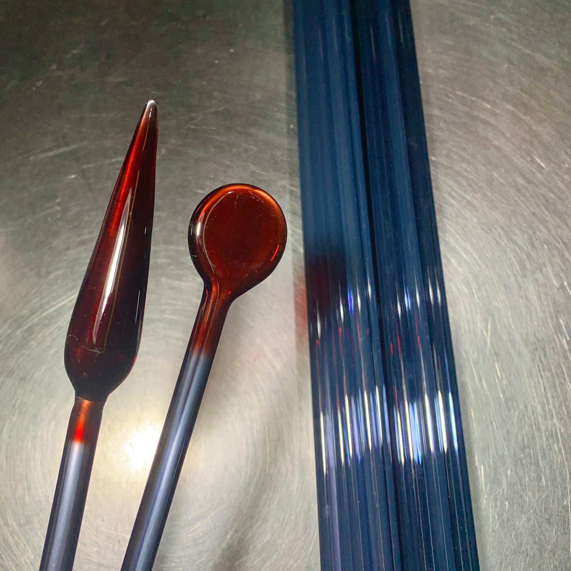 Exp. Light Blue Crimson is a flame striking red with a light blue cobalt base.