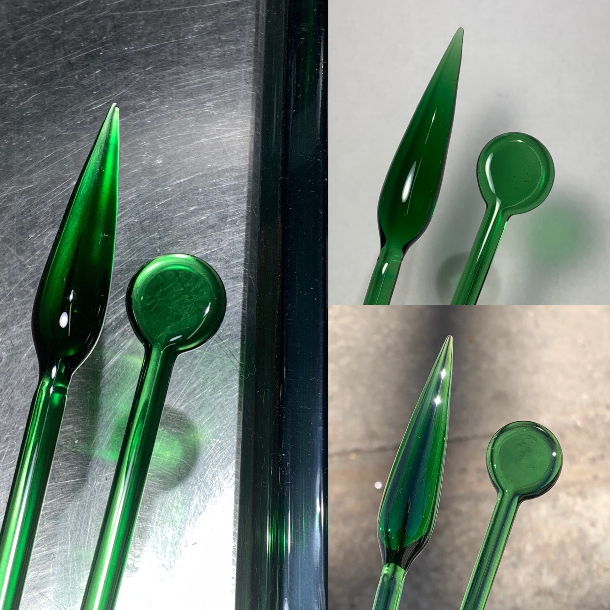 An experimental transparent green. Best worked in an oxidizing flame or encased.