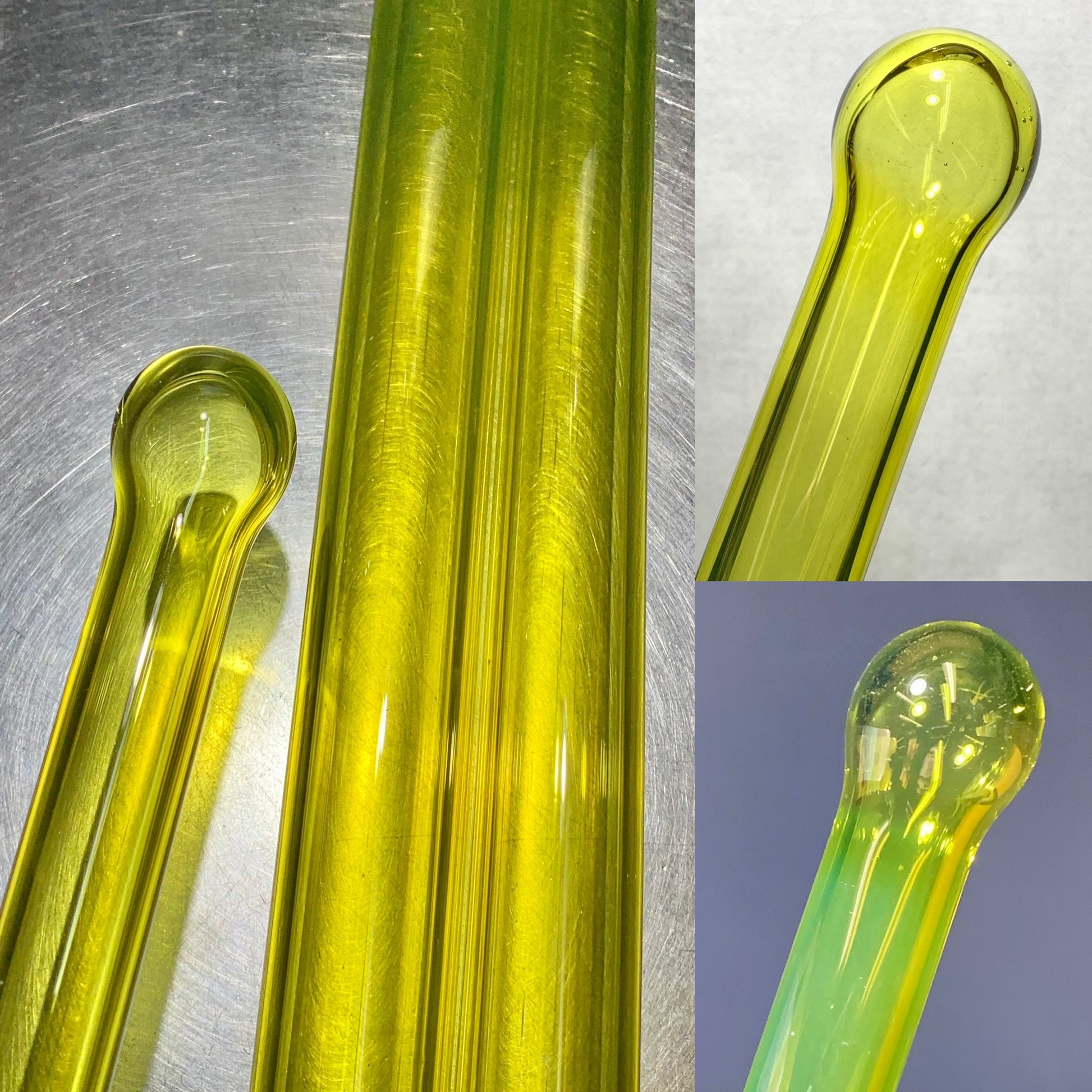 A yellow with light opal, best worked in neutral to oxidizing flames.