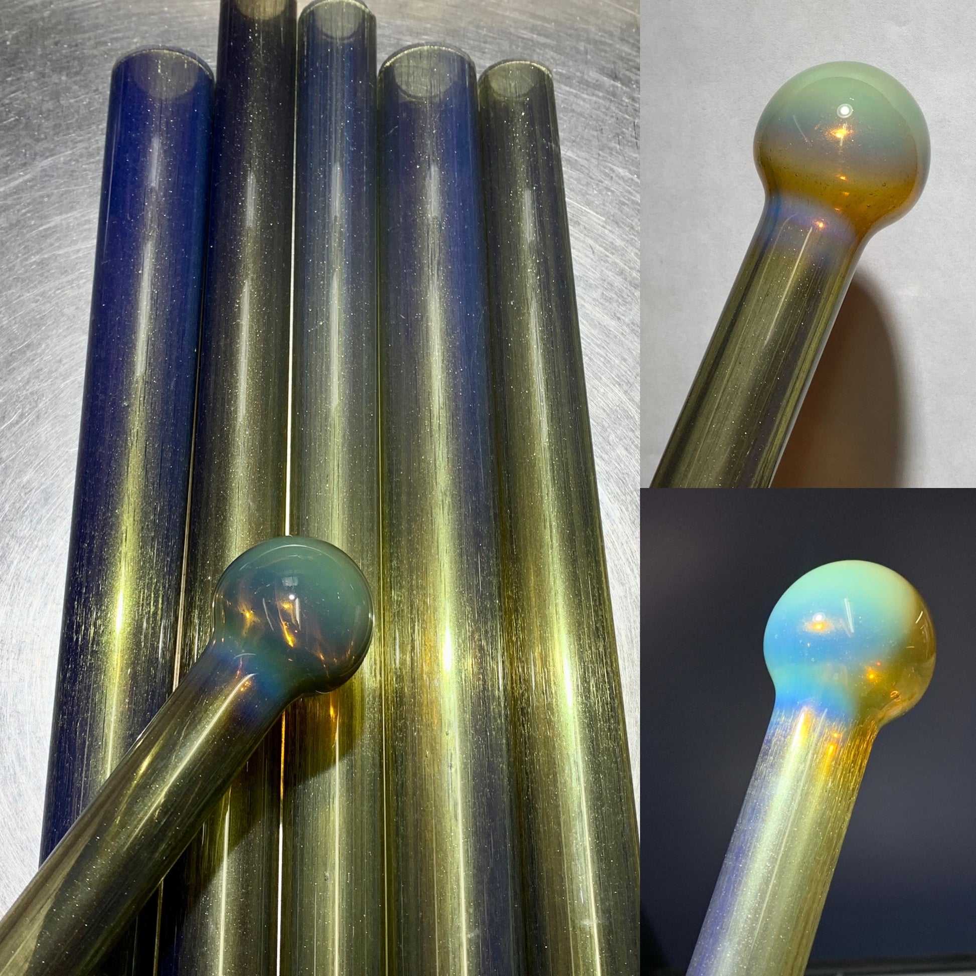 Dynamic combination of silver based Grease Stain and Experimental Bronze Pearl resulting in a complex tube with pearlescent and striking qualities.