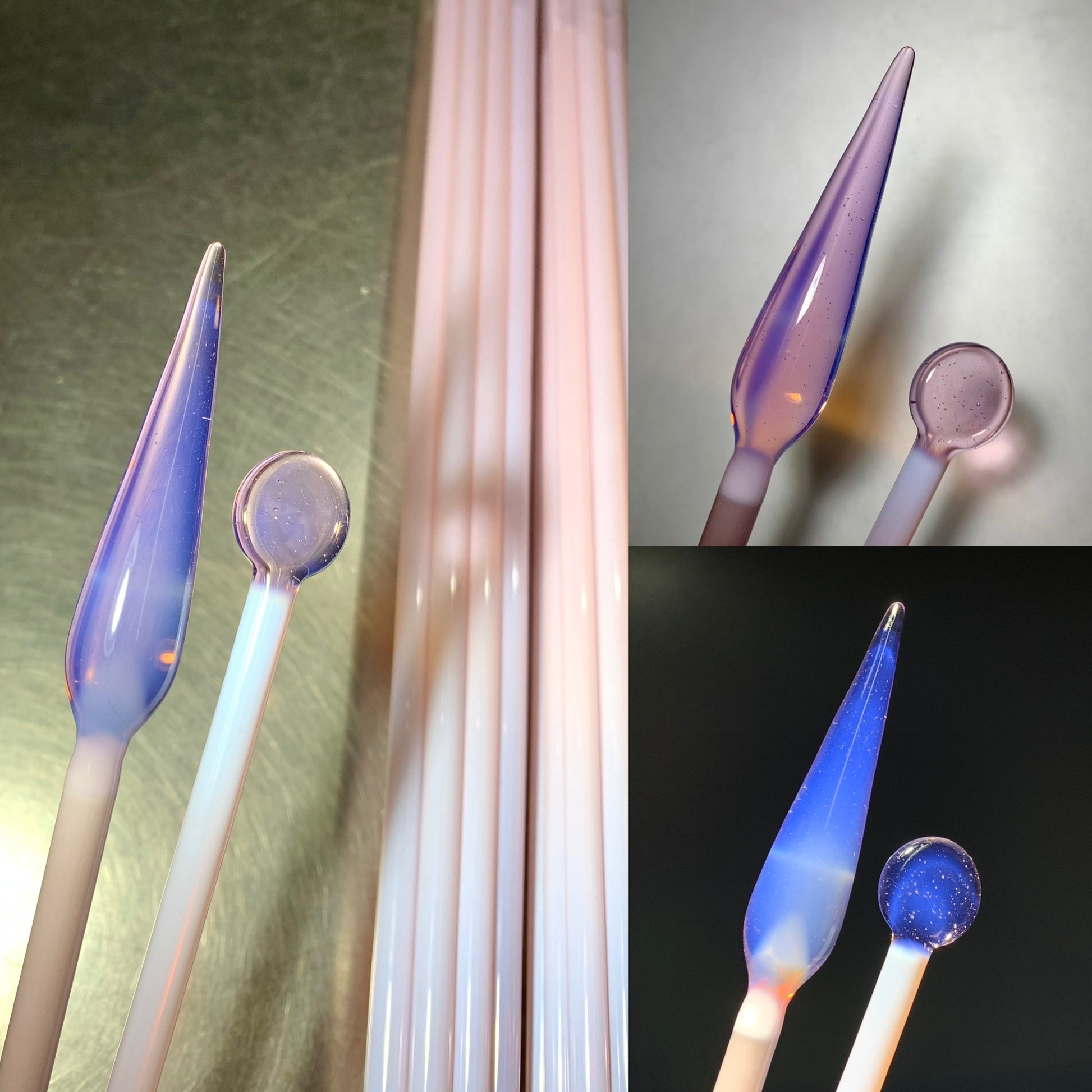 Rose Quartz is a lovely intense pink with CFL reactivity. Under CFL it goes to a more intense electric hot pink. Transitional refers to the opal content of the color and represents the mid point between Rose Quartz and Transparent Rose Quartz.